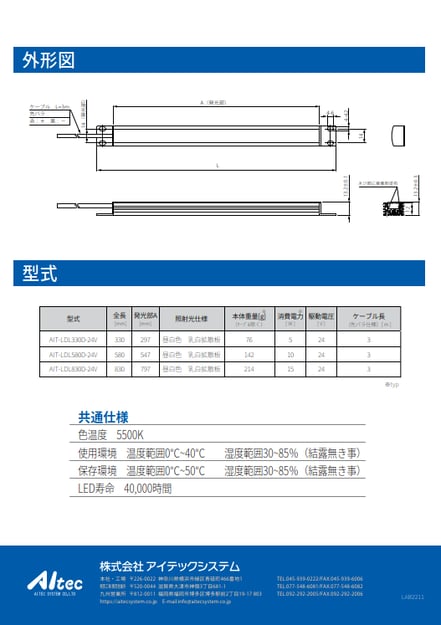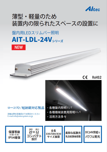 ●軽量かつコンパクト、盤内や狭い装置内照明として最適